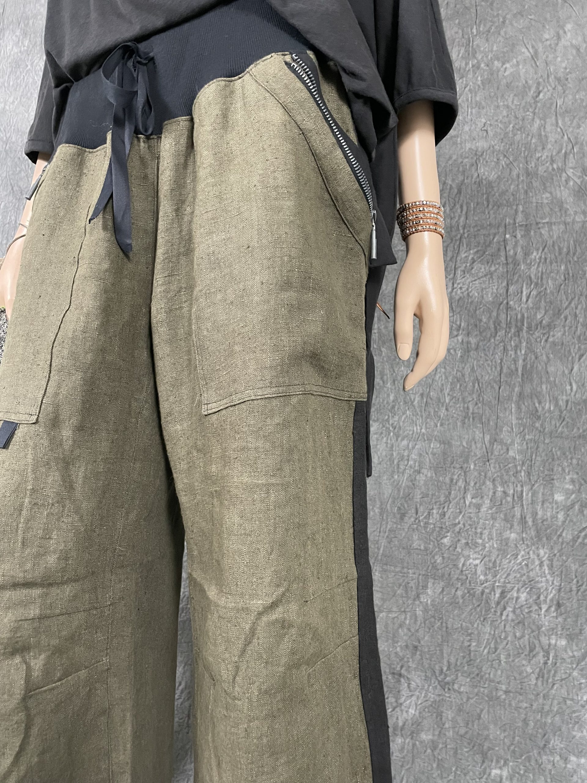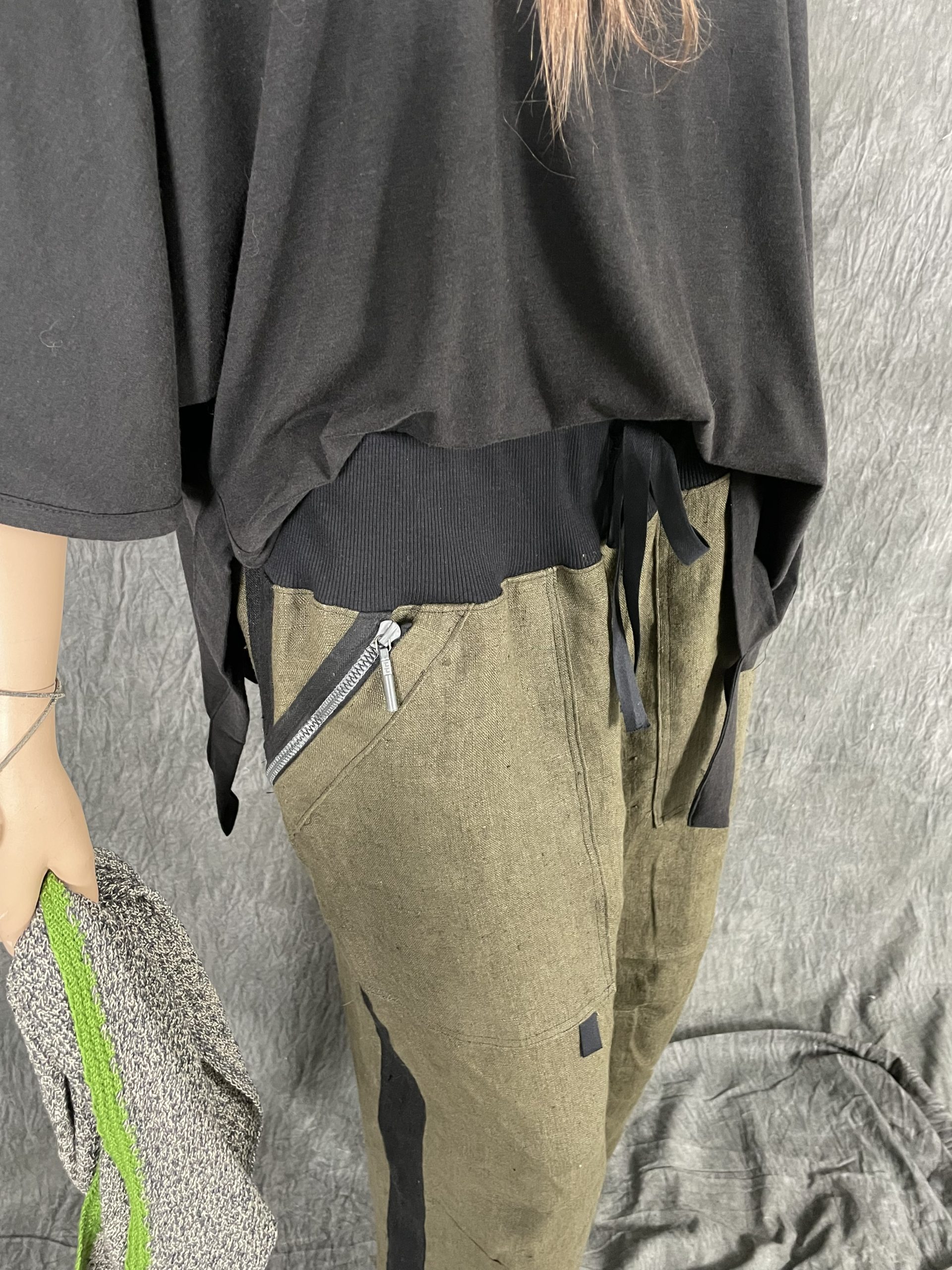 Miysu Broek Stripe is een bestseller, baggy, hennep linnen cargobroek